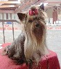 B tête, oreilles moyennes b situées, B stop, B ?il, B couleurs, B chanfrein? Tan en tête encore charbonné, Exc denture. B encolure, poitrine juvénile, B arrière main B texture, B couleurs, présentation correcte, ligne du dessus moyenne.